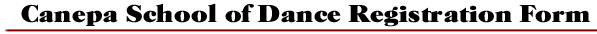 Student First Name _______________________Last Name______________________ Age______ Birthdate__________ Grade _______ Home Phone________________ P.O. Box___________ Email address (if frequently used)______________________________________ Address_________________________________ City__________________ Zip Code___________ Parent Name_____________ Work /CellPhone_____________Occupation____________________ 2nd Parent Name____________Phone # if other____________ Occupation_____________________ Any Medical problems, allergies, medications that we should know about_______________________ ______________________________________________________________ How you can help with season/productions: Sew _____ Make Phone calls_____ Advertising committee_____ Tickets_____ Runner____ Chaperone_____ Mailings_____ Costume Measurements_____ Office____ Assist w/ photo shoot____ Backstage Crew____ Props_____ Clean-up Crew_____ Computer Savvy_____ Usher____ Other_______________________________________ REGISTRATION IS INCOMPLETE WITHOUT SIGNATURE: Student, or students, legal guardian if under 18, understands and agrees that in participating in any dance class, workshop, rehearsal, or performance, there is the possibility of physical injury. Student agrees therefore, to assume all risks of any such injury which might occur during any and all Canepa School of Dance (CSD) classes, rehearsals, workshops, or performances, and exempts, releases and indemnifies, the CSD, it's owners, instructors, guest artists from any and all liability claims, demands,, or causes of action whatsoever from any damage, loss or injury to student or student's person or property which may arise out of or in connection with participation in any classes or activities conducted by the CSD whether such loss, damage, or injury results from the negligence of CSD, its owners, instructors, or guest artists, or from some other cause. I understand and agree to the terms set forth in the above Liability Waiver: Signed ___________________________________________ Date ___________________ a) No refunds of tuition or costume deposit after 3rd week of session. b) $15.00 NSF fee for all returned checks. Payment required in cash or money order. c) All outstanding balances from previous year must be paid at registration, or student will not be enrolled. d) All outstanding balances due, not paid by last week of class, students will not be allowed to perform in shows and no costumes will be handed out. ________________________________________________________________________________________ For office use ONLY: Form 5/04 Payment Received at Registration: Term________ Costume Deposit_________ Other___________ Cash____ Check #_______Date________ Ballets___________new/used Jazz Shoes_____________new/used Tap Shoes Style #______________new/used Shoes on order _____ Yes ____ No Paid in Advance? ____yes _____no AMOUNT DUE ___________ Comments:_______________________________________________Used shoes /Credit rec'd_________________ __________________________________________________________________________________________ Costume Cost___________ Tights included Yes___No____ Balance Due __________ Date paid__________ |
